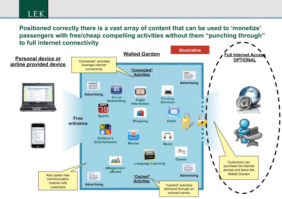 During a webinar with the L.E.K. consultancy this week, a case was made for monitizing content on board aircraft. Simply offering pay-to-play inflight Wi-Fi sessions will only ever attract a small percentage of buyers, management suggested. “So 15% of the market can pay over $5 per session while 85% don’t care.” The other options – “free/cheap compelling” entertaiment activities – can be “far more lucrative” for airlines, especially if sponsored.
