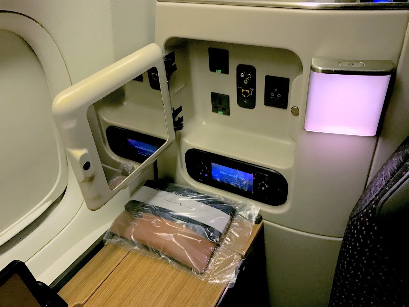 My first class throne tonight on @AmericanAir to LAX — very spacious, but I could wish for a bit more privacy. #PaxEx #thatjohnonAA pic.twitter.com/IJvoNT4mnC