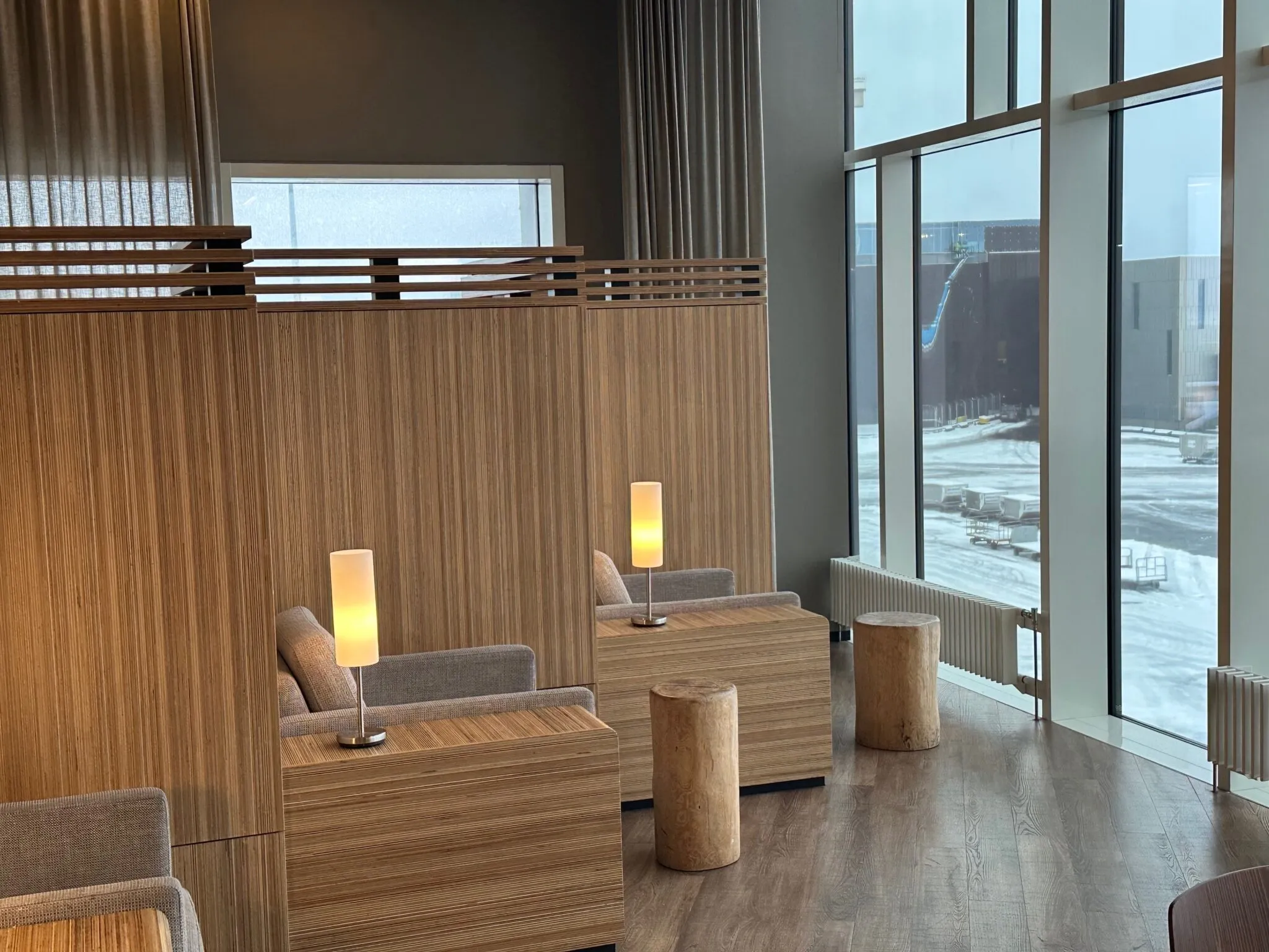 Located in the main terminal near the D gates, the lounge can be accessed by passengers flying up front with Icelandair or via certain codeshare partners, as well as by Saga Gold and Silver loyalty members, a variety of credit card holders, and others.