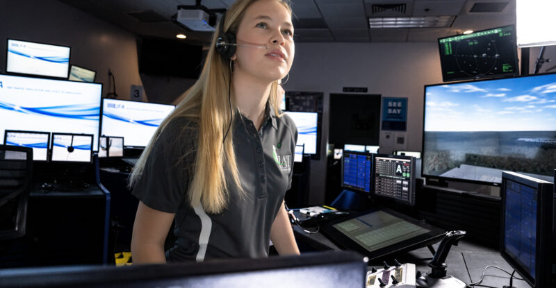 Based in the Department of Applied Aviation Sciences on the Daytona Beach Campus, the associate’s degree program offers a high-level curriculum adapted from Embry-Riddle’s Bachelor of Science in Air Traffic Management (ATM). The program’s expert faculty, with over 150 years of experience in air traffic control, will serve as instructors, and students will train on Embry-Riddle’s cutting-edge simulators in the university’s air traffic control labs. These advanced systems feature dynamic, immersive air traffic technology, including AI-assisted voice recognition and high-fidelity visualizations.